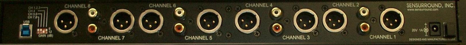 The Sensurround ABD-8A is a high performance multichannel balanced drive stage for home theater and professional monitoring applications. It accepts up to eight separate unbalanced audio signals and drives an equal number of balanced lines. The electrical performance, including frequency response, crosstalk, noise and distortion, are unmatched. The transparency and absence of any coloration or degradation produce an auditory experience that is breathtaking. Careful attention to detail and liberal use of shielding have made the ABD-8A one of the quietest units on the market. By using only the highest quality components and employing rigorous production testing, each unit can be offered with a 3 year warranty. The A version provides 3dB lower output noise relative to the original ABD-8. |